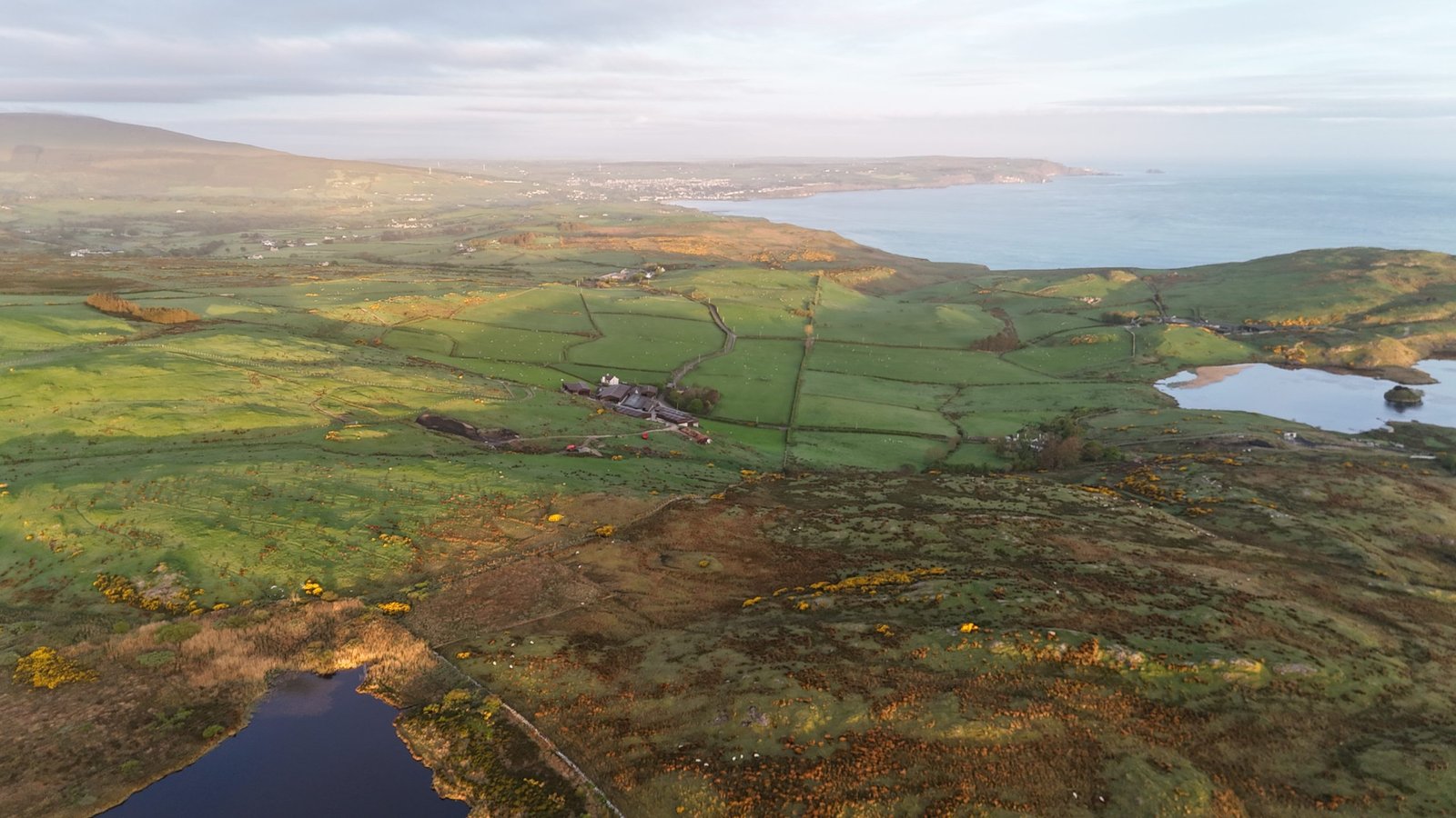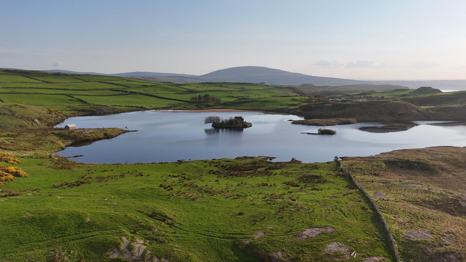 Fairhead Glamping Pods is on a working farm which has been in the McCarry family for several generations. The Glamping site is on Fairhead (Benmore) and is located just past Coolanlough, which is a clachan (small group of old cottages) and looks out over one of three lakes at Fairhead. Lough na Cranagh has a crannog (a manmade island) in the middle of it. The crannog in the lake dates back to approximately the 1600s and, reportably, was built by one of the McDonnell chieftains who apparently had a house and land on Fairhead.